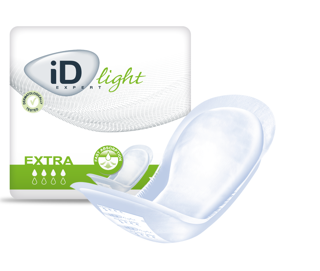 iD Expert Light Extra est une protection conçue pour les personnes qui ont besoin d'un produit discret avec une absorption maximale ! La forme anatomique du produit assure un ajustement parfait et la bande adhésive maintient le produit en place, vous pouvez donc être sûr que ce produit offre une protection ultime.
